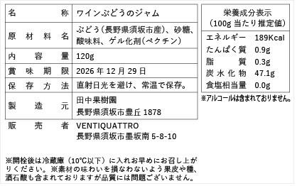 原材料名:ぶどう(長野県須坂市産)、砂糖、酸味料、ゲル化剤(ペクチン)